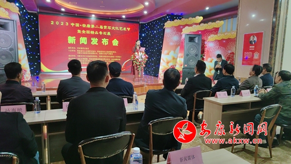 本網訊(記者 趙漪湉)6月4日,2023中國安康第二屆賞石文化節藝術節暨全國奇石精品展舉行新聞發布會。活動由省寶玉石觀賞石協會、省社區文化建設促進會、安康龍舟文化產業發展有限公司、安康市文化產業協會主辦,安康市社區文化建設促進會、安康社促會奇石協會承辦,漢江流域各省、市賞石(奇石)協會等有關單位協辦,將于第23屆中國安康漢江龍舟節期間在我市舉辦。uUe安康新聞網