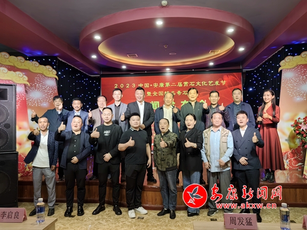 市政協原副主席、市社區文化建設促進會高級顧問、文化名人李啟良出席新聞發布會,中國觀賞石協會形象大使、省社區文化建設促進會常務副會長、中國漢江石界聯盟主席、著名男高音歌唱家周發猛宣布石展活動正式啟動。市文化投資發展有限公司、市社區文化產業協會、市書法家協會、安康社促會奇石協會會長和安康文化界、賞石界專家、收藏家等參加新聞發布會。uUe安康新聞網