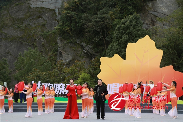 金秋時節的茨溝鎮,萬畝紅葉、層林盡染。伴隨著歡快的鑼鼓聲,茨溝鎮、五里鎮、譚壩鎮三支隊伍輪番登場,不僅獻唱原創村歌,還展示特色產業、優質資源與地方文化,紛紛亮出獨具特色的“看家絕活兒”。歌伴舞《村歌飛揚》《松壩謠》《幸福歌兒唱起來》唱出了鄉親們的幸福生活;以修建八一水庫為背景的安康歌謠《我來了》引發會場共鳴;民俗表演《龍的傳人》則將節目推向高潮。舞蹈、鄉村T臺秀、民俗表演、八岔戲等節目,或以傳統幽默詼諧的風格,或以深情敘述的方式,展現鄉村新生活,為觀眾獻上一場別開生面的視聽盛宴,現場歡呼聲此起彼伏。tD9安康新聞網