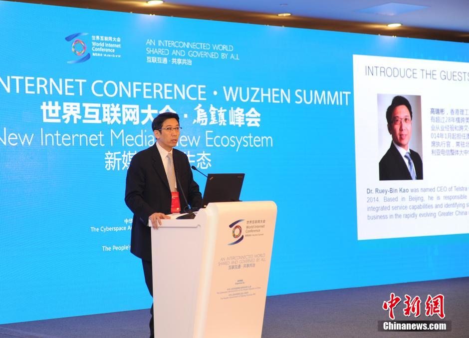 11月19日,澳大利亞電信大中華區(qū)CEO高瑞彬在烏鎮(zhèn)舉行的首屆世界互聯(lián)網(wǎng)大會新媒體分論壇上發(fā)言。當(dāng)天,世界互聯(lián)網(wǎng)大會在浙江烏鎮(zhèn)拉開帷幕。 中新社發(fā) 李晨韻 攝aa5安康新聞網(wǎng)