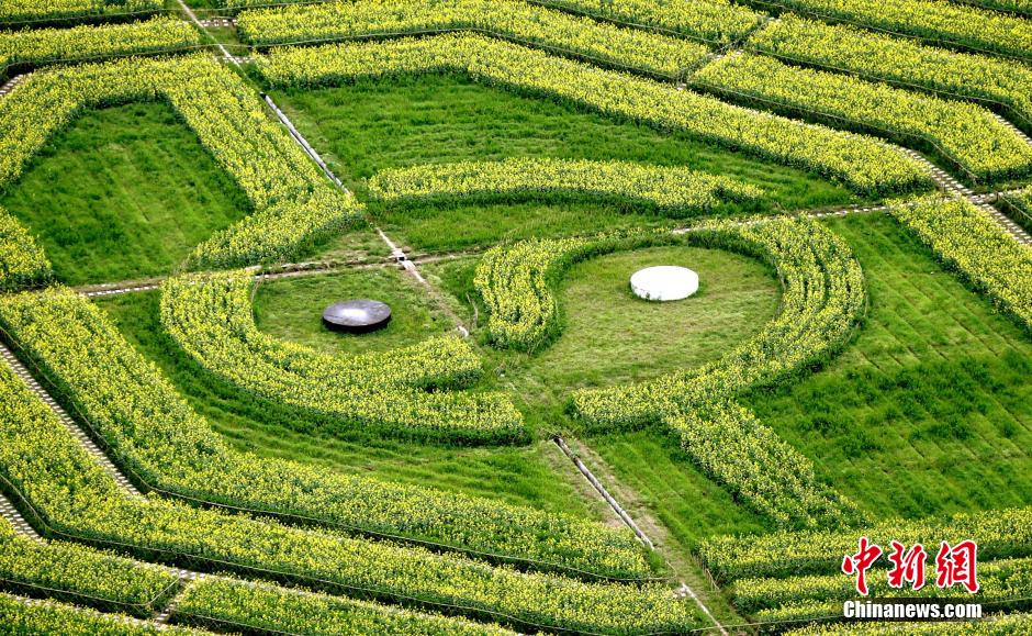 3月24日,安徽齊云山油菜花盛開(kāi)金黃與一個(gè)“太極八卦圖”相映成趣。 中新社發(fā) 施廣德 攝