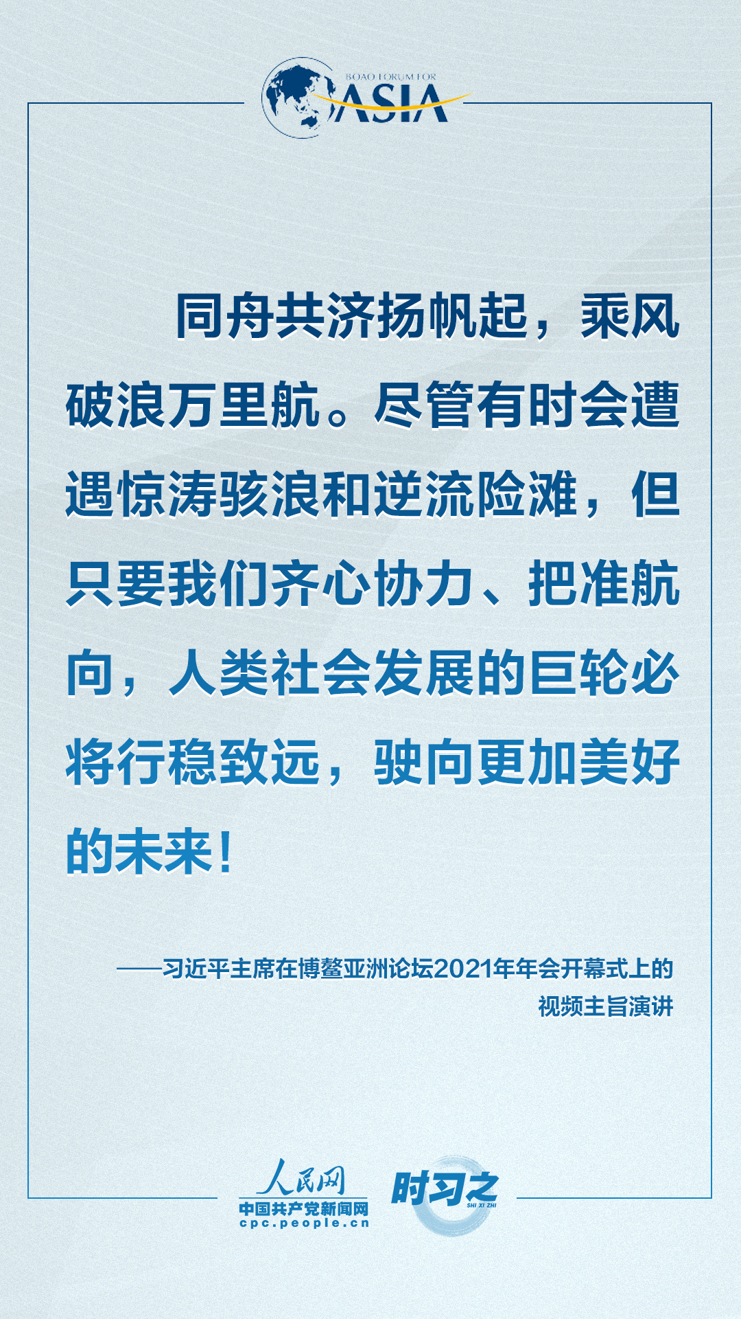 4月20日上午,博鰲亞洲論壇2021年年會開幕式在海南博鰲舉行,國家主席習近平以視頻方式發表題為《同舟共濟克時艱,命運與共創未來》的主旨演講。面對“人類社會應該向何處去?我們應該為子孫后代創造一個什么樣的未來?”的重大命題,習近平這樣對世界說。qTz安康新聞網