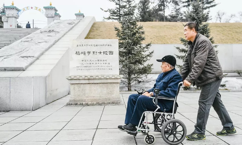 徐振明是吉林省通化市革命烈士陵園管理所首任所長(zhǎng),現(xiàn)年96歲。他先后參加過(guò)抗日戰(zhàn)爭(zhēng)、解放戰(zhàn)爭(zhēng),1950年參加抗美援朝戰(zhàn)爭(zhēng),曾榮立多次戰(zhàn)功。他退伍轉(zhuǎn)業(yè)到楊靖宇烈士陵園工作,父子兩代默默守護(hù)英雄陵墓60余年,身體力行保護(hù)革命遺跡,講述英雄故事,弘揚(yáng)革命精神。圖為徐振明(左)和兒子徐永軍來(lái)到楊靖宇烈士陵園。 新華社記者 王昊飛/攝