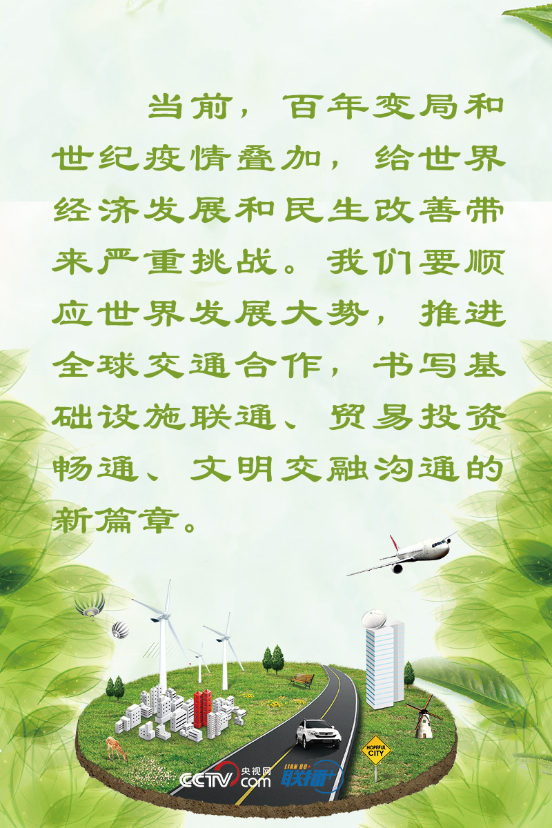 10月14日,習近平主席以視頻方式出席第二屆聯合國全球可持續交通大會開幕式并發表題為《與世界相交 與時代相通 在可持續發展道路上闊步前行》的主旨講話,深入分析當前世界形勢,提出五點倡議,為推進全球交通合作貢獻中國智慧。