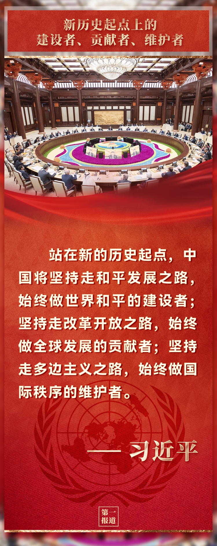 追昔撫今,鑒往知來。站在新的歷史起點,中國將堅持走和平發展之路,始終做世界和平的建設者;堅持走改革開放之路,始終做全球發展的貢獻者;堅持走多邊主義之路,始終做國際秩序的維護者。