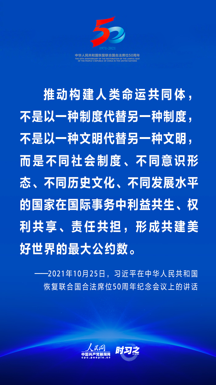 10月25日,國家主席習近平在北京出席中華人民共和國恢復聯合國合法席位50周年紀念會議并發表重要講話。在講話中,習近平回顧了中華人民共和國恢復在聯合國合法席位50年以來的重大成就,面對百年未有之大變局,重申中國將始終做世界和平的建設者、全球發展的貢獻者和國際秩序的維護者。 WTT安康新聞網
