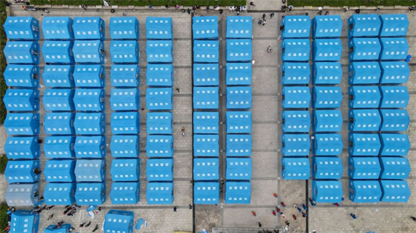 王崗坪鄉地處大渡河峽谷,受災較重。地震發生后,應急、電力、交通等部門連夜奮力救援搶修。6日,記者在該鄉一處安置點看到,廣場上搭建起一排排應急帳篷,受災群眾有人在生火做飯,有人在清理生活垃圾,礦泉水、面包、牛奶等救援物資正一箱箱地運進安置點。
