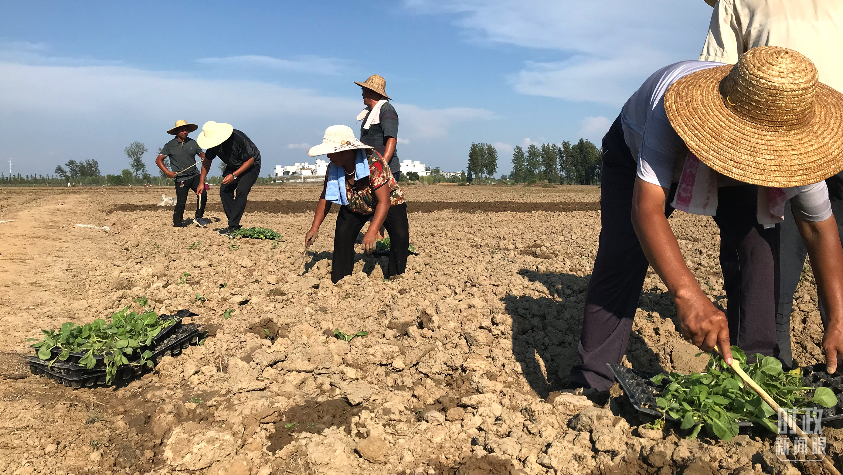 △當年洪水退去后,安徽省蒙洼蓄洪區的村民正在補種蔬菜。(總臺央視記者石偉明拍攝)