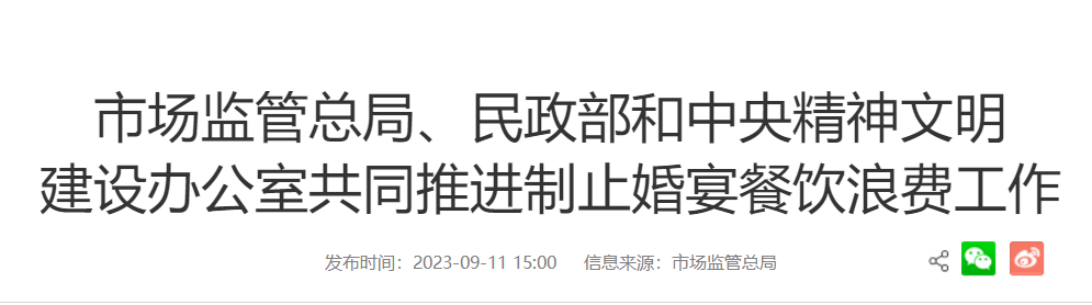 市場監管總局、民政部和中央精神文明建設辦公室共同推進制止婚宴餐飲浪費工作