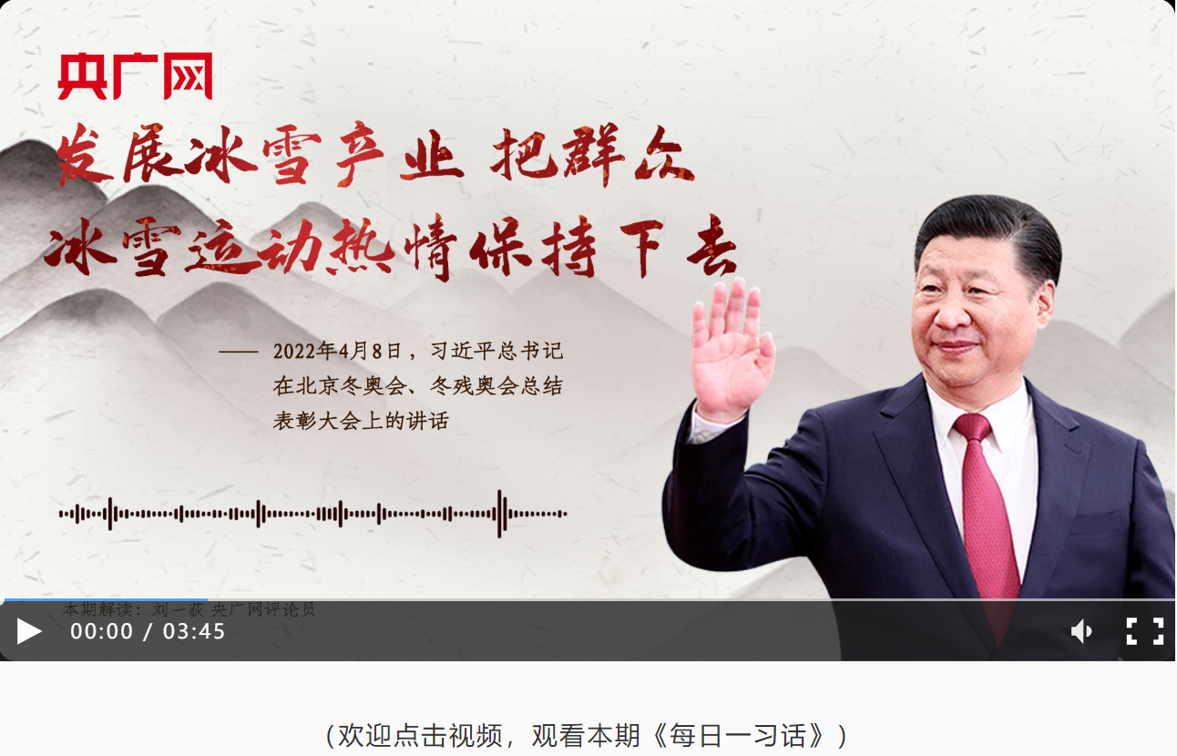 這段話出自2022年4月8日習近平總書記在北京冬奧會、冬殘奧會總結表彰大會上的講話。