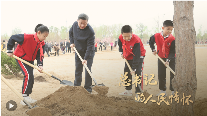 進入新時代,習近平總書記連續12年帶頭參加首都義務植樹。今年參加首都義務植樹活動時,總書記號召大家都行動起來,“積極參與植樹造林,人人爭當綠色使者、生態先鋒,為建設美麗中國增綠添彩”。人人關心、支持、參與生態環保的社會氛圍逐步形成。