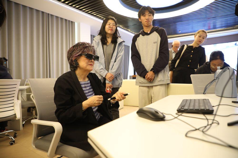 4月15日,在培黎職業學院,英中了解協會榮譽主席佐伊·里德體驗學生們親手設計搭建的虛擬現實場景模型。新華社記者 張智敏 攝FUY安康新聞網