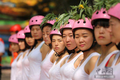 4月29日,河南省三門峽市女子漂流救援隊員佩戴偽裝成花草的視頻記錄儀,對漂流河道進行安全檢查。該視頻記錄儀可放置在頭頂對全身進行監控、也可以放置在胸部、下……
