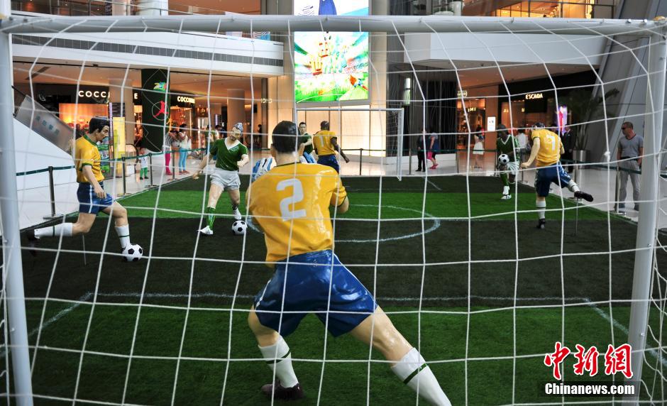 6月11日,濟南一商家將世界杯巴西隊“主場”比賽模型搬進商場,吸引消費者關注。2014年世界杯足球賽開賽在即,為迎接此項盛事,濟南的商家紛紛打造別具匠心的球……