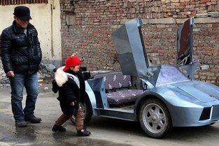 市郊城中村里出現一輛跑車總能吸引大家的目光。 (侯建勛攝)2014年2月19日,河南省鄭州市二七區,一輛手工自制的跑車吸引了不少市民觀看。50多歲的郭大爺是這輛……