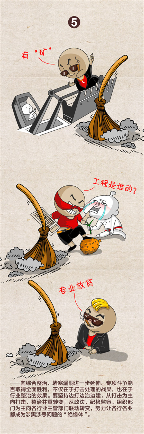 中央紀委國家監委網站近日發布一組題為《2019掃黑除惡“六個延伸”》的漫畫,對2019年掃黑除惡專項斗爭提出向偵破大案、打財斷血進一步延伸,向網絡空間、新興領域進一步延伸,向深挖幕后、打傘破網進一步延伸,向依法懲治、快訴快判進一步延伸,向綜合整治、堵塞漏洞進一步延伸,向固本強基、鏟除土壤進一步延伸等六大方向。vVQ安康新聞網