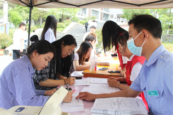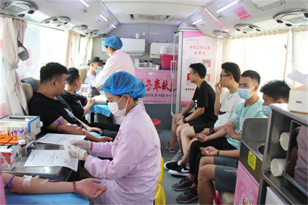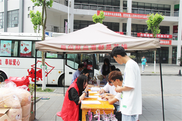 現場除了積極獻血的同學,參與服務的志愿者們也非常熱情,他們細心地指導同學填寫體檢表,為獻血者倒水,發放紀念品,向前來咨詢的同學宣傳無償獻血,不少人也在輪換休息后走上獻血車伸出手臂勇敢獻血。