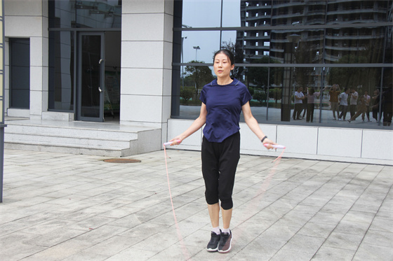 雙人項目考驗的是默契度和耐力,不少組合也亮點紛呈,有面對面跳的,有側身對面跳的,還有背對著跳的,不管姿勢如何,共同的節奏是保持勝利的關鍵,當然雙人跳到最后還得拼體力,不少選手氣息節奏被打亂,但大家都咬牙堅持,沒人選擇放棄,哪怕絆亂了繩子一次次重來也要堅持到最后一秒,周圍同事也不斷為場上選手加油鼓勁,氣氛相當熱烈。t2c安康新聞網