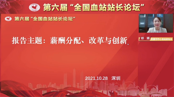 為加強全國血站的經驗交流與合作,2021年10月27日至28日,第六屆 “全國血站站長論壇”在深圳市舉辦。中國輸血協會理事長、世界衛生組織輸血合作中心主任朱永明,深圳市衛健委二級巡視員林漢城等相關領導出席并致辭。此次論壇的主題是“血站建設與發展、改革與創新”,來自全國各省、市血液中心(血站)的同仁通過線上方式參加會議。安康市中心血站副站長鄧娟作為全國血站六個優秀論文交流發言人之一,就安康血站績效分配、改革與創新工作在會上進行了經驗交流。YTe安康新聞網
