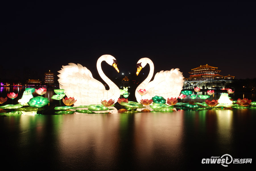 這兩只高達5.5米的巨型“天鵝”,是本屆燈會主打的彩燈之一。3H6安康新聞網