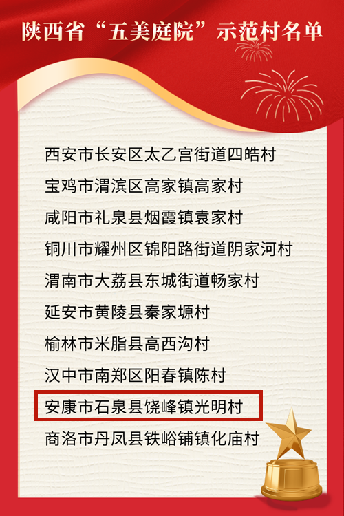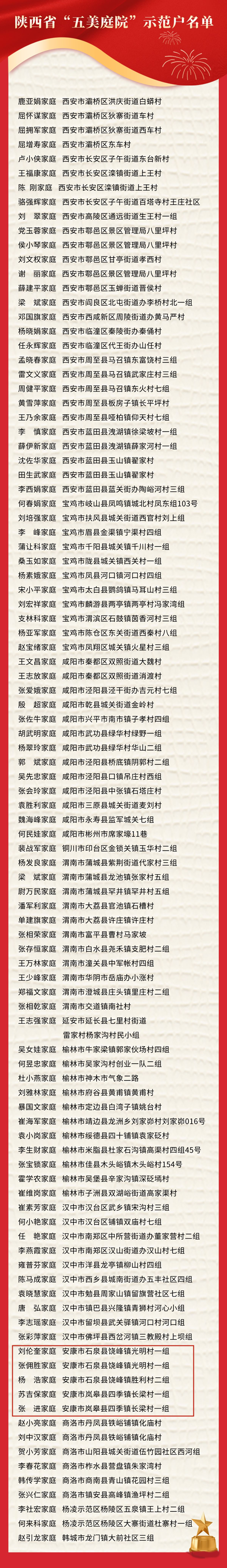 近年來,全省各級婦聯堅持以習近平新時代中國特色社會主義思想為指導,貫徹落實全面推進鄉村振興的決策部署,深入推進“鄉村振興巾幗行動”,以“五美庭院”創建工作為抓手,在參與生態文明建設、助力脫貧攻堅、推動鄉村振興中發揮了積極作用,農村人居環境、鄉風文明程度顯著提高。為進一步發揮典型的示范引領作用,省婦聯首批認定西安市長安區太乙宮街道四皓村等10個村為陜西省“五美庭院”示范村,鹿亞娟家庭等100戶為陜西省“五美庭院”示范戶,現將名單予以公布。 TJP安康新聞網