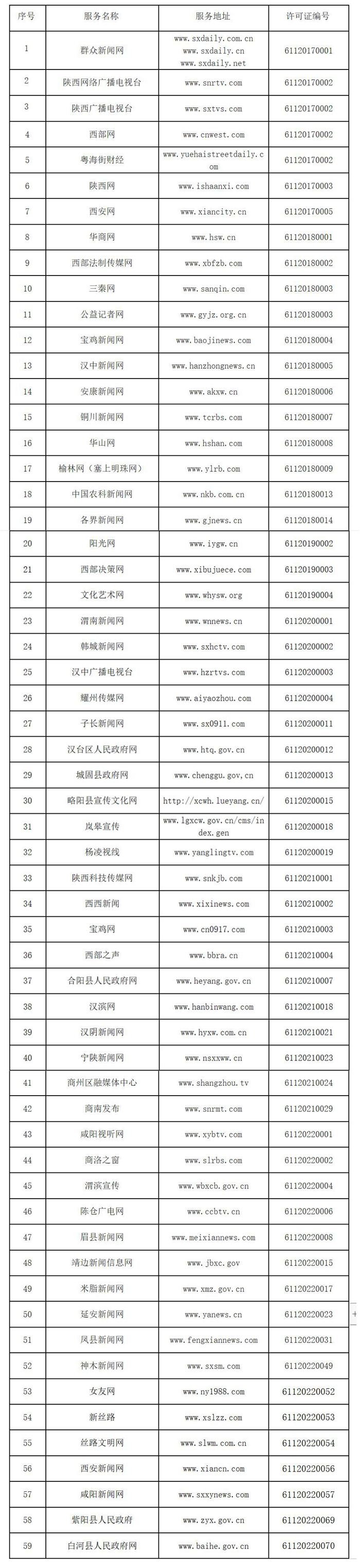 《互聯(lián)網(wǎng)新聞信息服務(wù)管理規(guī)定》實(shí)施以來,陜西省網(wǎng)信辦按照國家互聯(lián)網(wǎng)信息辦公室統(tǒng)一工作部署,組織開展屬地互聯(lián)網(wǎng)新聞信息服務(wù)許可審批工作。現(xiàn)將陜西省互聯(lián)網(wǎng)新聞信息服務(wù)單位相關(guān)許可信息予以公開,包括:服務(wù)主體136個(gè),互聯(lián)網(wǎng)站59個(gè),應(yīng)用程序130個(gè),論壇2個(gè),公眾賬號299個(gè),共計(jì)490個(gè)服務(wù)項(xiàng)。