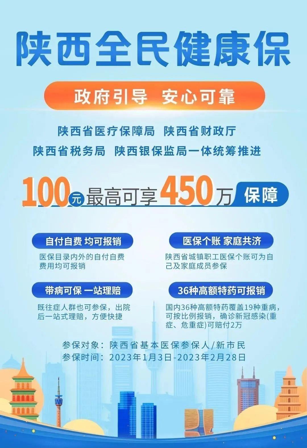 1月3日,據陜西“全民健康保”新聞發布會暨啟動儀式上消息,陜西“全民健康保”對我省基本醫保參保人員和新市民實行全民準入,不設置年齡、既往病史和職業類型等限制條件。新市民是指在陜西省內長期居住且在其他地區參保基本醫保的人員。簡單說就是,無論男女老少,不限年齡、不限職業、不限戶籍、不限病史,只要你有醫保就能買。要么你在陜西省各地市交了醫保,要么你在別的省市有醫保但常住陜西省內。