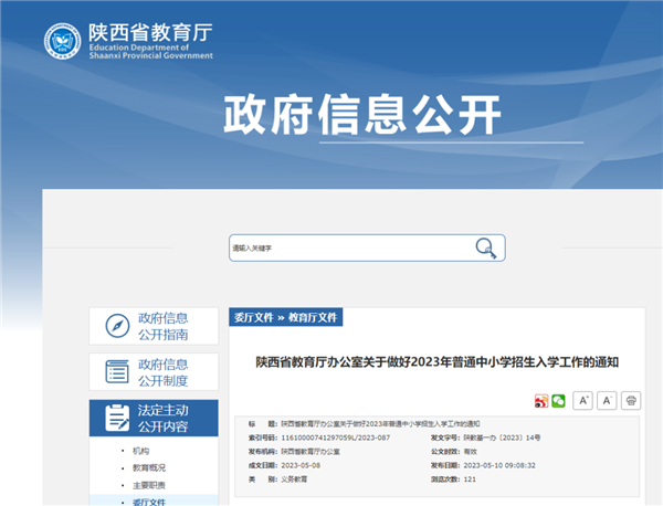 5月10日,陜西省教育廳發(fā)布關(guān)于做好2023年普通中小學(xué)招生入學(xué)工作的通知,具體內(nèi)容如下: