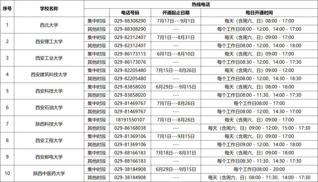 為幫助廣大學生和家長及時準確了解國家資助政策,申請獲得相應資助,陜西省地方高校本專科學段每年暑期均開通熱線電話。