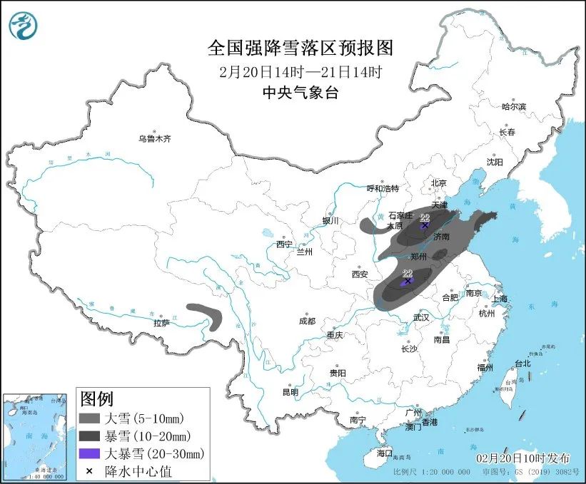 中央氣象臺2月20日10時發布暴雪黃色預警: