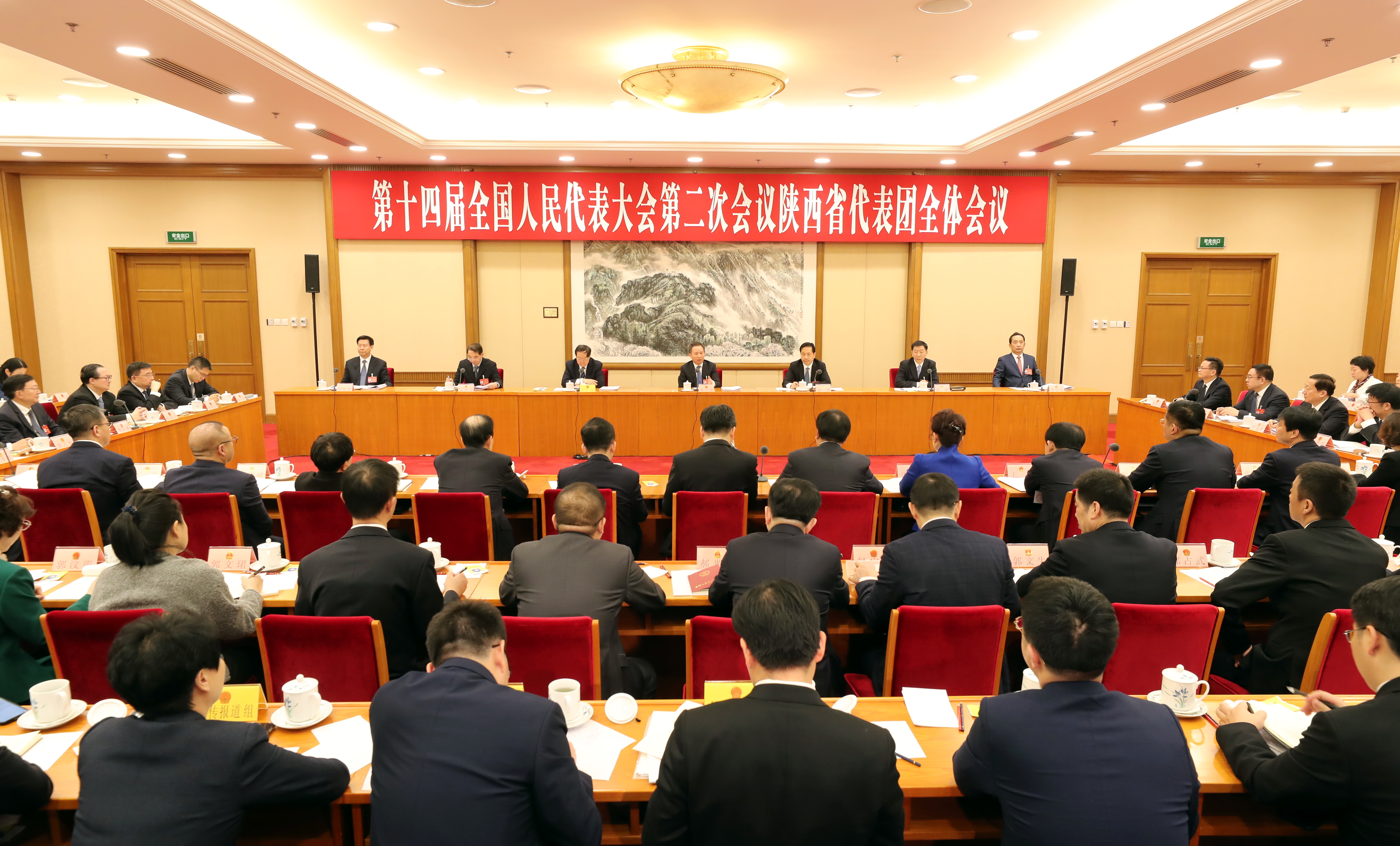 陜西代表團團長趙一德主持會議。代表團副團長趙剛、王興寧、李明遠、莊長興參加審議。自然資源部部長王廣華,國務院辦公廳、有關部委同志到會聽取審議意見。