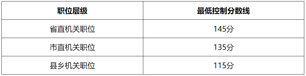 1.最低控制分?jǐn)?shù)線。為確保錄用人員的基本素質(zhì),區(qū)別職位層級(jí)劃定進(jìn)入面試資格復(fù)審人員的公共科目筆試總成績(jī)(不含公安專(zhuān)業(yè)考試成績(jī))最低控制分?jǐn)?shù)線,具體情況如下: