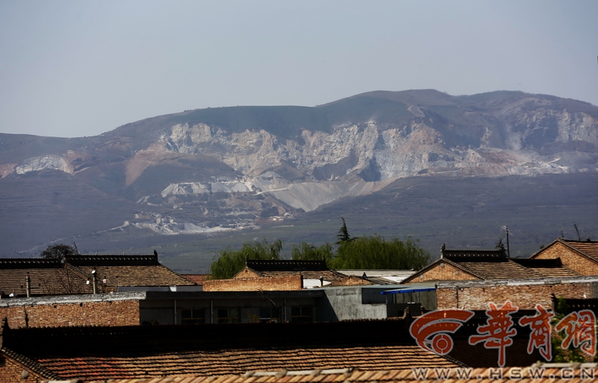 禮泉縣五鳳山一家石料廠開山采石6年時間,從南坊鎮望去五鳳山半個山體已被挖空,這里的石頭主要用于建筑石灰巖生產。 記者鄧小衛 文/圖