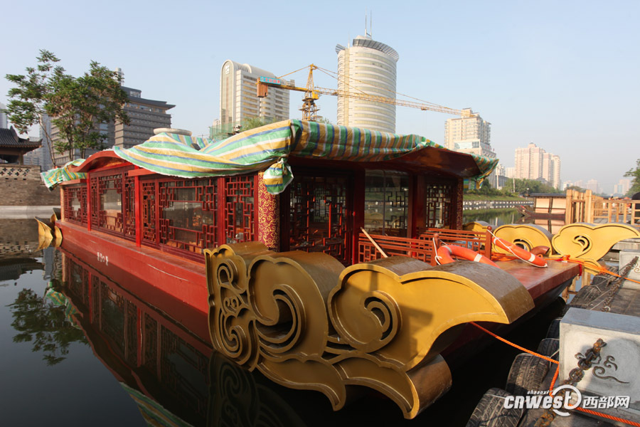 據(jù)了解,另外9艘游船最近也將從江蘇運達(dá)西安,這些仿古船是電瓶船,沒有污染。建國門到朱雀門段護(hù)城河示范段5月1日對外開放后,將有16艘不同主題的游船供游人乘坐,游客可在護(hù)城河內(nèi)泛舟游覽。