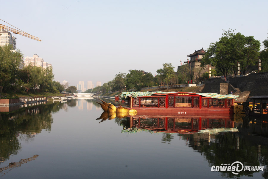 古色古香的游船,在清清的河水上、在藍藍的天空下顯得格外漂亮。