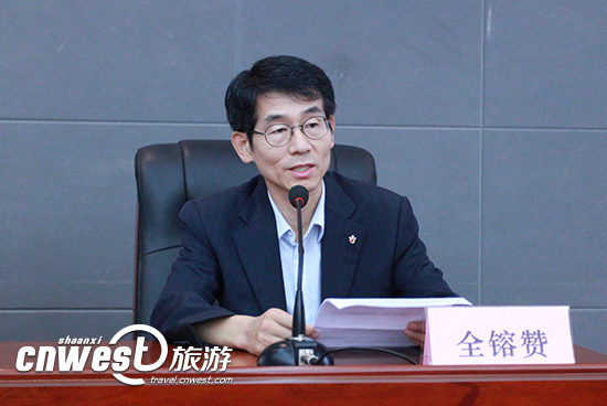 韓國旅游發展局西安辦事處首席代表全镕贊介紹主賓國的活動安排。西部網訊 2015中國西安絲綢之路國際旅游博覽會(簡稱絲路旅博會)將于9月11日-13日在西安曲江國際……
