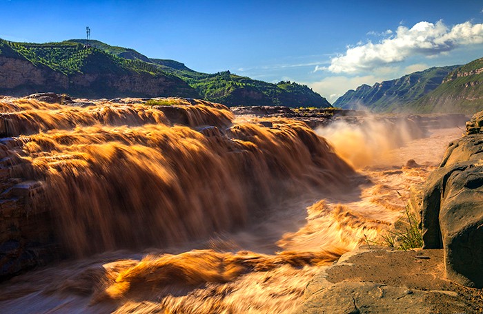 進入7月份以來,受上游降雨和水庫調節放水的影響,黃河水量也日漸充沛起來。逢汛期,壺口瀑布水量大增,濁流滾滾奔騰而下,主副瀑布連成一線,磅礴的氣勢更是蔚為……