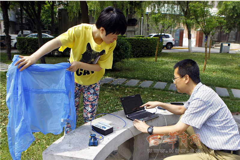 5月30日上午,西北大學馮老師用儀器進行紫外線照射實驗 華商報記者 閆文青 攝炎炎夏日來臨,你知道多少防曬秘密?市面上琳瑯滿目的各類防曬產品都靠譜嗎?本期華……