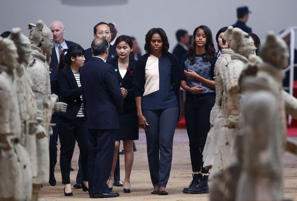 2014年3月24日,西安,美國“第一夫人”米歇爾抵達西安,根據行程安排,他們一行將參觀秦始皇兵馬俑并登上城墻,感受千年古都的魅力。……