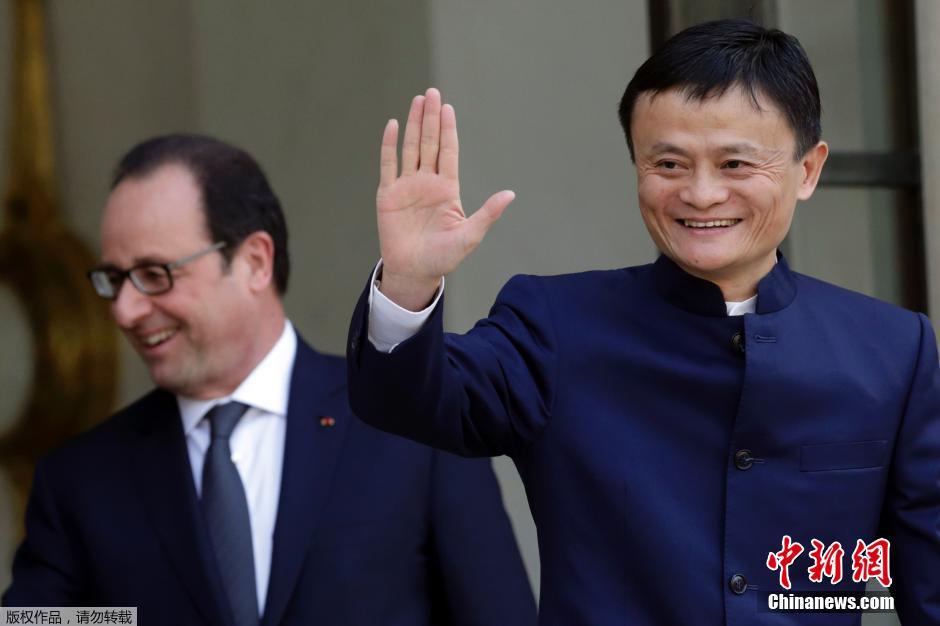 當地時間2015年3月18日,法國巴黎,阿里巴巴集團CEO馬云抵達愛麗舍宮,與法國總統奧朗德舉行會談。