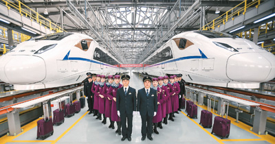 | 12月4日,西成高鐵首發(fā)乘務(wù)班組在中國(guó)鐵路成都局集團(tuán)有限公司成都動(dòng)車段亮相。 |