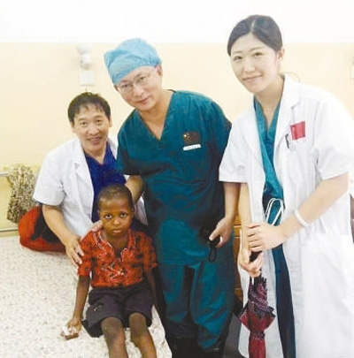 | 中國醫生與康復的幾內亞小患者合影。 |