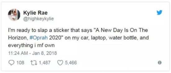 Kylie Rae:我已經準備好在我的車、電腦、水瓶和我所有物品上貼上標簽:“A New Day Is On The Horizon,#奧普拉2020”。TEN安康新聞網