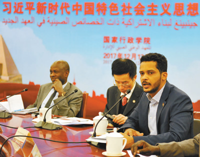 習近平新時代中國特色社會主義思想、人類命運共同體、反腐斗爭、精準扶貧、“一帶一路”……2017年歲末,20位蘇丹政府部級官員來到中國參加國家行政學院的培訓交流。黨的十九大規劃了中國從現在到本世紀中葉的發展藍圖,宣示了中方愿同各方推動構建人類命運共同體的真誠愿望。蘇丹政府決策者們希望更加深入地理解中國和中國共產黨,學習借鑒中國經驗和中國智慧,解讀中國共產黨的“執政密碼”VvV安康新聞網