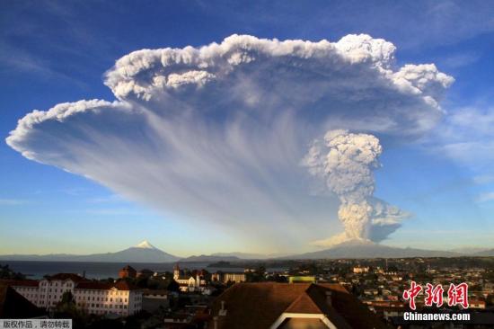 當?shù)貢r間2015年4月22日,智利蒙特港,卡爾布科火山爆發(fā),噴出的濃厚的火山灰和煙塵幾公里外都能看見。中新網(wǎng)4月23日電 據(jù)外媒報道,22日,智利卡爾布科火山噴發(fā),……