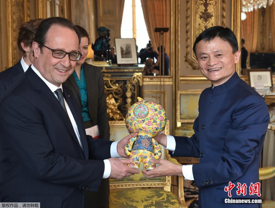 當(dāng)?shù)貢r間2015年3月18日,法國巴黎,阿里巴巴集團(tuán)CEO馬云抵達(dá)愛麗舍宮,與法國總統(tǒng)奧朗德舉行會談。當(dāng)?shù)貢r間2015年3月18日,法國巴黎,阿里巴巴集團(tuán)CEO馬云抵達(dá)愛……