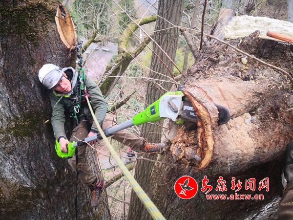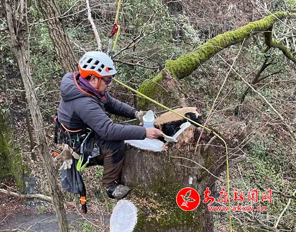 “在修復期間,我們聘請了國內最頂尖的攀樹師、修剪師,攀登到樹頂,對樹體的枯枝、病腐枝進行了清理,然后對所有樹洞存在腐爛的地方,使用消毒滅菌的藥物進行處理,對影響樹體生長,可能造成二次傷害位置的漏洞、樹洞進行了封堵。我們使用的攀樹、修剪技術目前在我們陜西省內屬于首次的應用,通過這次修剪之后讓陽光照進傷口,使古樹再次萌發了蓬勃生長的動力”,白河縣林業局自然保護地管理辦公室主任肖培軍介紹說。
