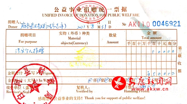 據悉,這筆特殊捐款來自2020年時任陜西省府谷縣財政局副局長高志平。在當年全省脫貧攻堅交叉檢查時,白河縣脫貧攻堅資金績效檢查組被抽調檢查府谷縣,在近一個月的時間里,高志平與檢查組成員們同吃同住、相互配合,高質量完成了檢查任務,也結下了深厚的兄弟情義。在得知白河縣受到暴雨天氣影響,多地發生災情時,他心急如焚,一直用微信與白河縣的同志們交流了解情況。當得知本次白河受災嚴重時,他第一時間表示要求捐款,委托白河的同志幫忙通過微信轉賬進行捐款,知道捐贈成功后,高志平心里的一塊大石頭終于落地,他高興地說:“只是做了自己力所能及、量力而行的事,希望更多的人都能獻出一點愛,幫助災民渡過災情。”