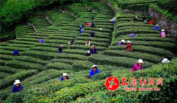 綿延的茶葉梯田坡坡相偎,縷縷茶香沁人心脾,碧綠的茶園如同飄揚的絲帶,沿著平坦開闊的“宋大公路”鋪開,在白河縣宋家鎮這抹綠色不僅是色彩,更是村民增收致富的法寶。按照“茶旅一體”的發展思路,該鎮建成標準化茶園2.5萬畝,力將茶區變景區。2021年,宋家鎮被農業農村部表彰為“一村一品”示范村鎮。