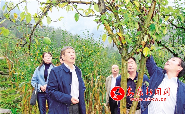 縣人大常委會主任何益新(前排左一)調研督辦縣政府及其相關單位辦理《關于推進木瓜產業持續發展的議案》情況